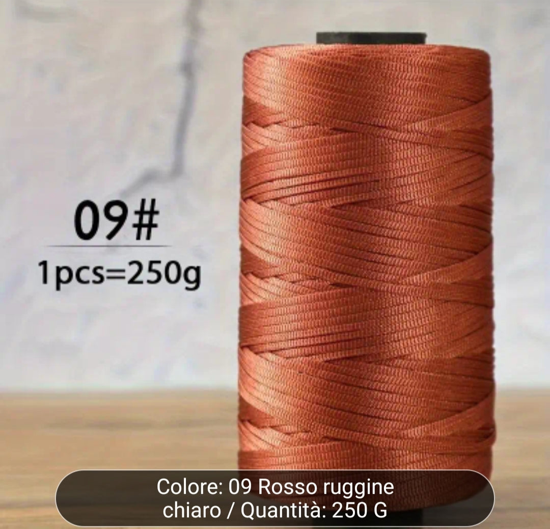Cordino thai piatto spessore 3 mm ideale per borse, morbido e brillante. Rocche da 250 grammi. Uncinetto consigliato 3 o 4 mm.